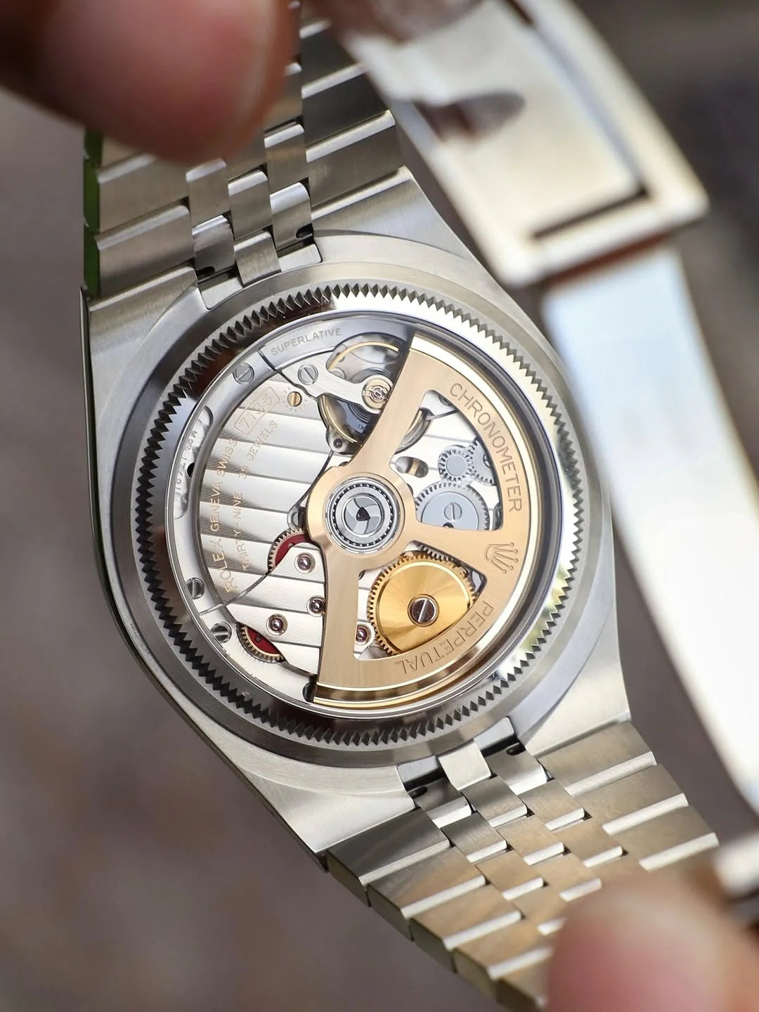 One of them is the balance wheel, manufactured with a high-tech ceramic, patented and exclusive to Rolex. This is a remarkably strong and resistant material, used only in the manufacture of the balance wheel. The balance wheel itself is made of optimized brass.