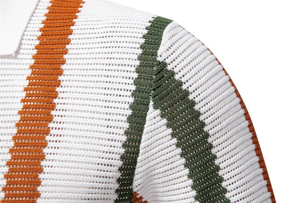 This textured knit polo shirt has a retro charm and sophisticated style. The vertical stripes in sober tones create an elegant silhouette, while the classic collar reinforces the timeless design. A versatile piece that exudes the old-money spirit, perfect for creating refined looks with ease and comfort.